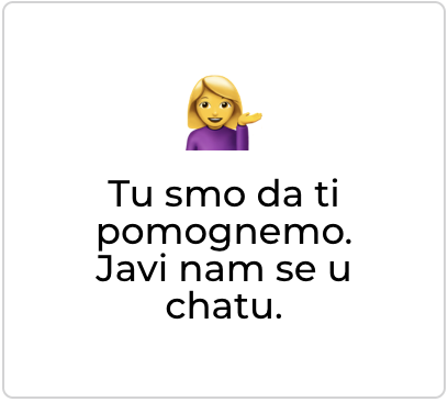 Trebaš pomoć? Javi nam se putem chata uživo—tu smo za tebe.